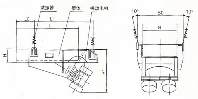 GZD型振動(dòng)給料機(jī)主要由振動(dòng)機(jī)架、振動(dòng)電動(dòng)機(jī)、彈簧、支承座及耐磨襯板等組成。GZD型振動(dòng)給料機(jī)由于振動(dòng)電動(dòng)機(jī)的啟動(dòng),使機(jī)架在支承彈簧上作強(qiáng)制振動(dòng),物料則以此振動(dòng)為動(dòng)力,在料槽上作滑動(dòng)及拋擲運(yùn)動(dòng),從而使物料前移而達(dá)到給料目的。