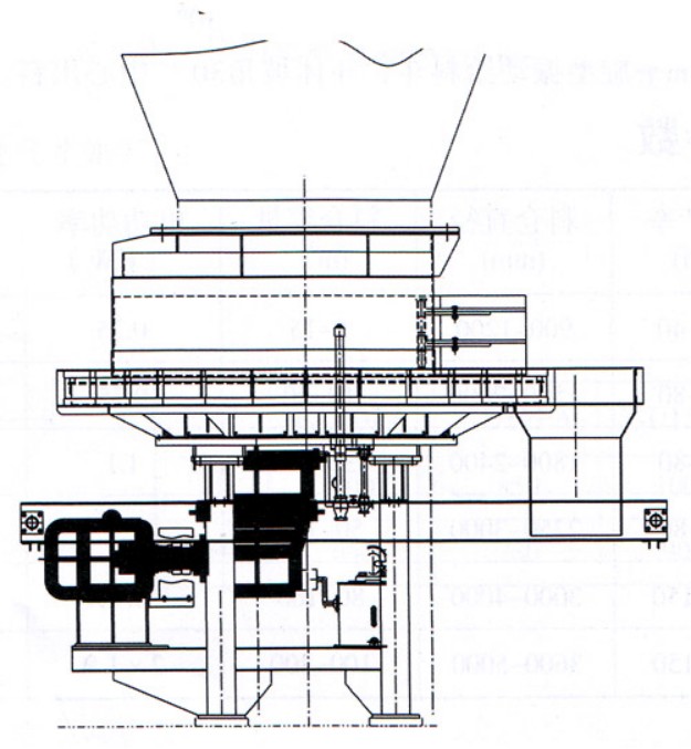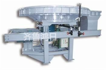 該機(jī)主要由圓盤盤面、料套、刮料板、擋料板、手動(dòng)閘門裝置,主支架、料罩、回轉(zhuǎn)支承、硬齒面減速器、電機(jī)、襯板等組成。給料圓盤隨料倉的壓力來自驅(qū)動(dòng)裝置的動(dòng)力,通過內(nèi)齒輪副的作用使圓盤作回轉(zhuǎn)運(yùn)動(dòng),從而使料倉的物料不斷排出。內(nèi)齒輪副加工簡單,旋轉(zhuǎn)體下部設(shè)有承受料倉壓力的******回轉(zhuǎn)支承。