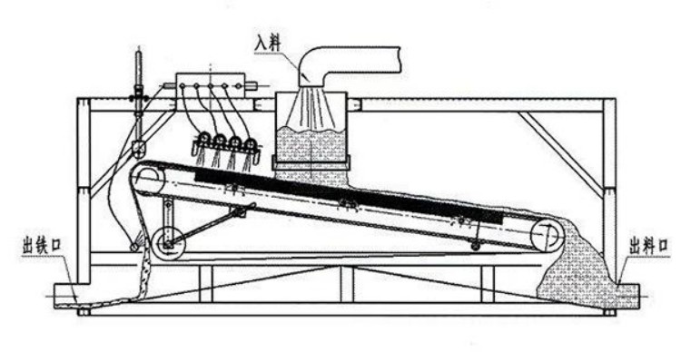 高梯度平板磁選機(jī),采用帶式分選結(jié)構(gòu),在整個(gè)工作區(qū)域從進(jìn)料到出料,物料在皮帶的帶動(dòng)下,可對(duì)物料進(jìn)行多次磁攪拌,同時(shí)在水流的沖洗作用下,把不含磁的尾礦除去,帶有磁性的礦物被皮帶輸送到板選機(jī)的脫磁區(qū),從而將帶有磁性的礦物通過脫磁裝置脫掉,來完成選礦的過程,整機(jī)功率小、處理大,磁場(chǎng)強(qiáng)度高,并達(dá)到很好的品質(zhì),能夠獲得更大的效益。